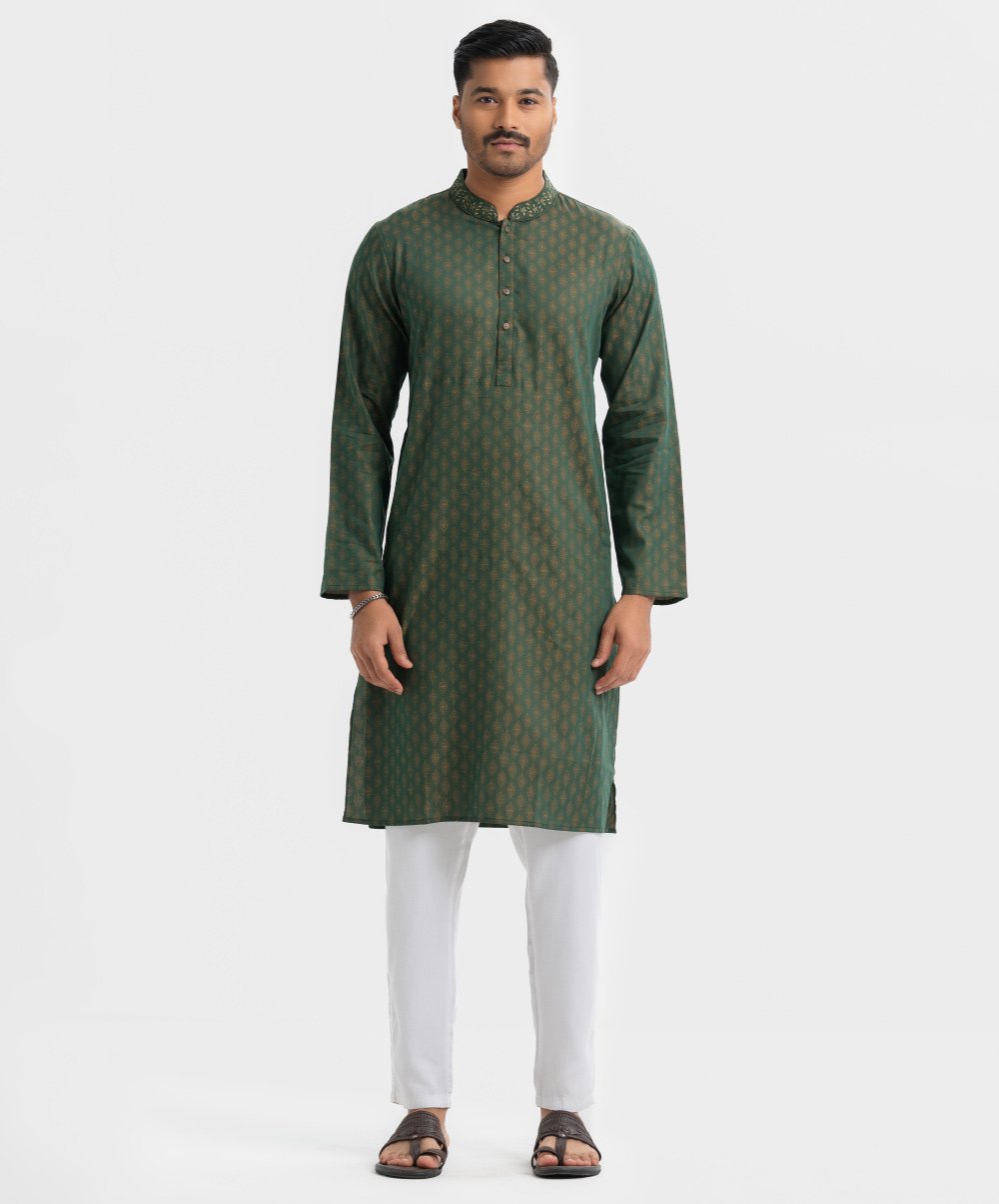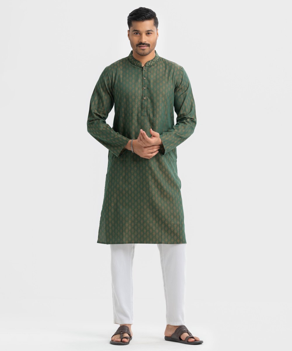 Green Jacquard Slim Fitted Panjabi